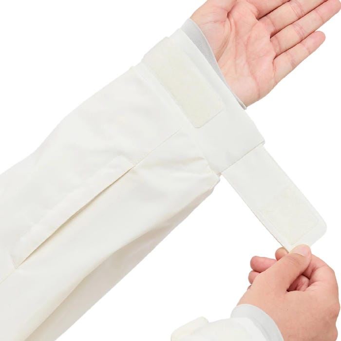 ・着丈は長めで、裾に配置したエラスティックコードによって裾幅の調節が可能です。