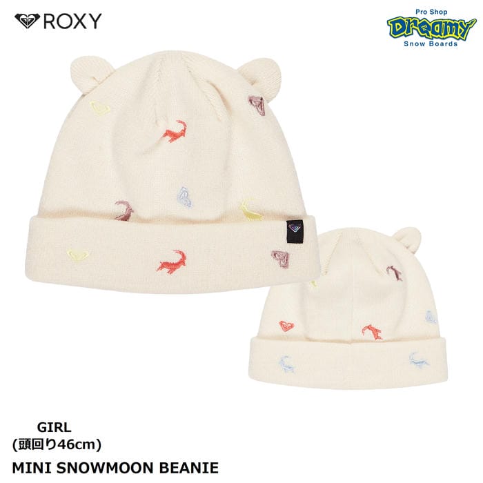 ROXY MINI SNOWMOON BEANIE ERLHA03182 キッズ ビーニー 頭回り46cm 折り返し アニマルモチーフ 耳つき 刺繍 ロゴ ニットキャップ スノーボード ロキシー 正規品