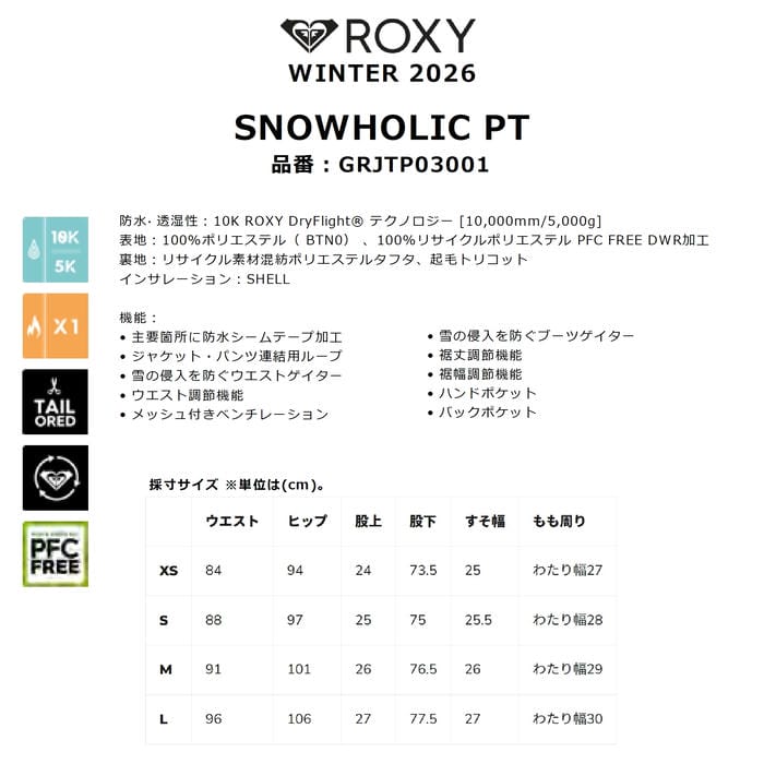 ・どのパンツを選べばよいか悩んでいる方には、こちらのパンツをおススメします。特長防水? 透湿性:10K ROXY DryFlight テクノロジー [10,000mm/5,000g]