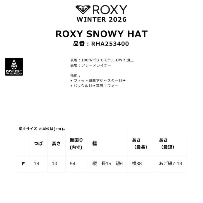 ROXY ROXY SNOWY HAT RHA253400 パイロットハット 撥水 フリースライナー バックル付きイヤーフラップ フィット調節アジャスター スノーボード ロキシー 正規品