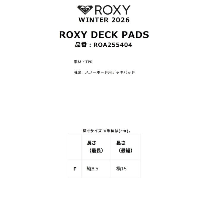 定価:2500+(税)サイズFカラーBLK , WBB , WHT概要・ROXYロゴプリントのデッキパッドは、クリアカラーとブラックカラーから選択可能です。