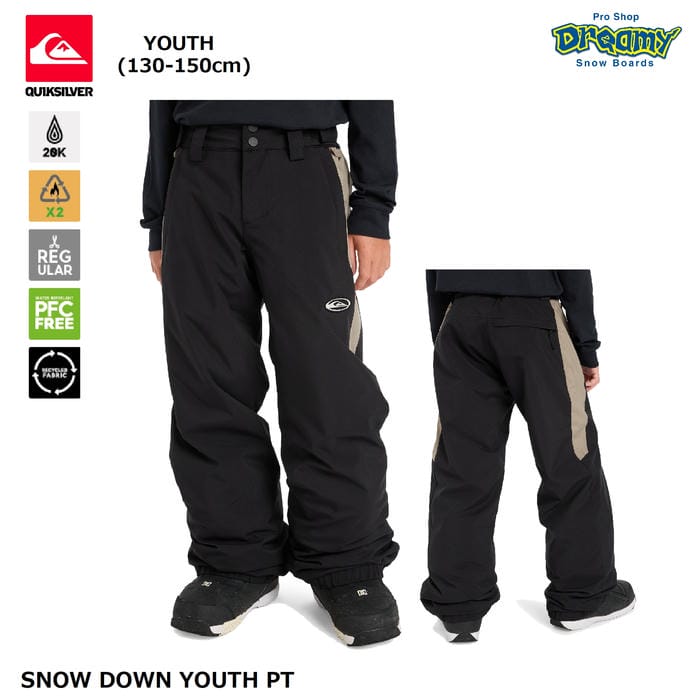 QUIKSILVER SNOW DOWN YOUTH PT EQBTP03061 キッズ スノーパンツ 130-150cm レギュラーフィット 防水 撥水 起毛裏地 ウエスト調節 ロゴ クイックシルバー 正規品