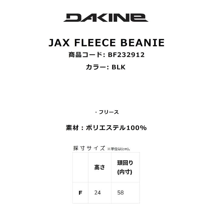 DAKINE JAX FLEECE BEANIE BF232912 ビーニー フリース 伸縮 カフ付きデザイン 折り返し フリーサイズ 無地 シンプル 保温 軽量 ロゴ BLK ダカイン 正規品