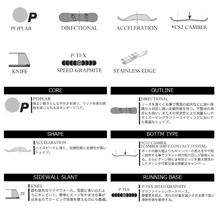 フリーカービングやテクニカル戦、フリースタイルゲート等あらゆるジャンルに対応するカービングモデルの登場。構造ディレクショナル