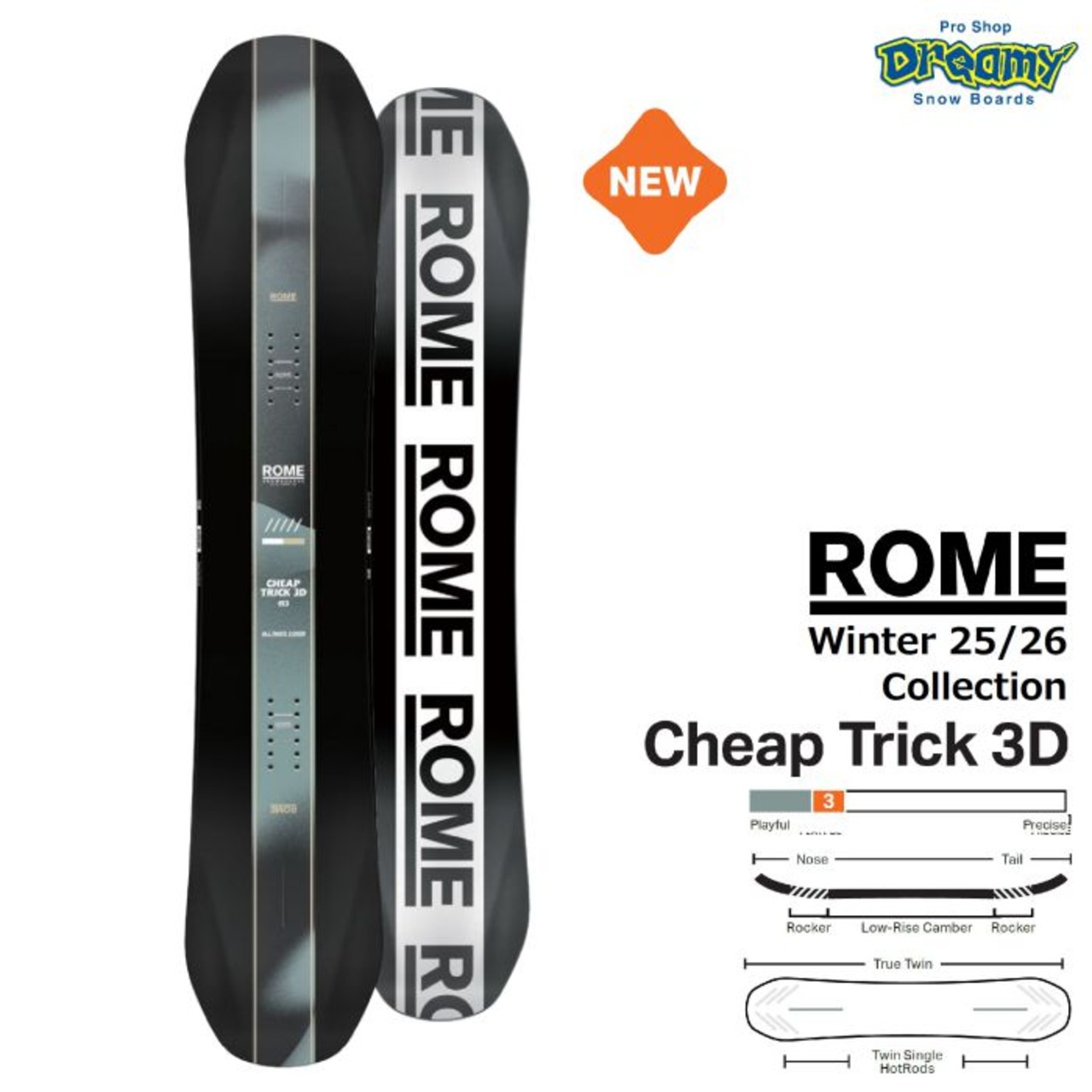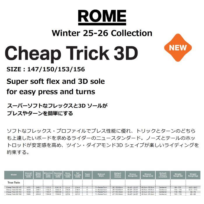25-26 ROME Cheap Trick 3D 150 コンタクトキャンバー ツイン ソフトフレックス パークパウダー トリック ローム 21025030 スノーボード