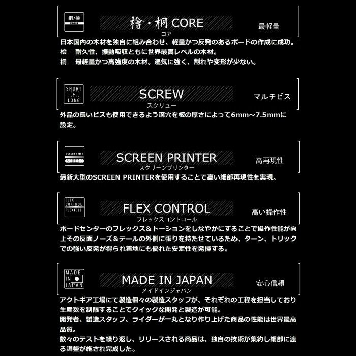ミディアムなフレックスながらもノーズ・テール部に張りを持たせることにより、高速域でも正確性の高いライドが可能となった。