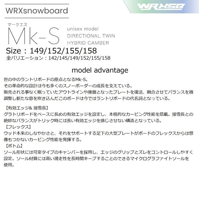 25-26 WRX Mk-S ディレクショナル ツイン ハイブリッドキャンバー カービング グラトリ メンズ 国産 ダブルアールエックス マークエス スノーボード