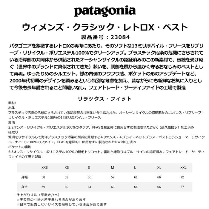 patagonia ウィメンズ・クラシック・レトロX・ベスト 23084 リラックスフィット 撥水加工 パイル・フリース ジップアップ 胸ポケット ロゴ パタゴニア 正規品