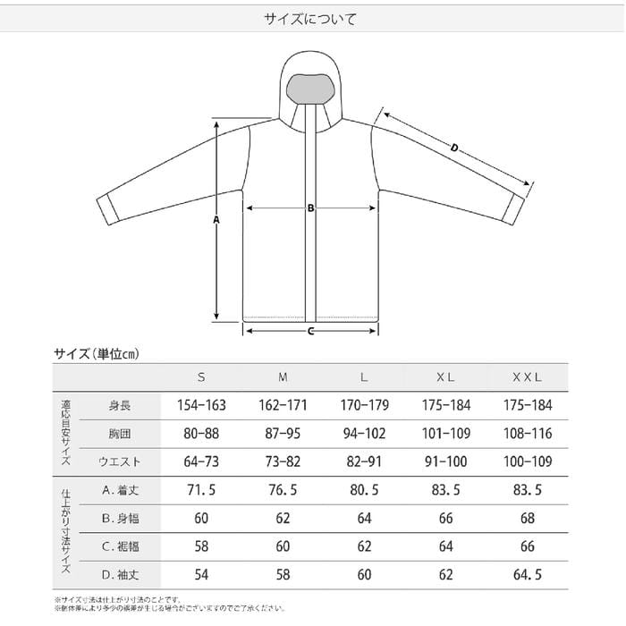 ・耐水10,000mm、透湿5,000g、撥水加工。