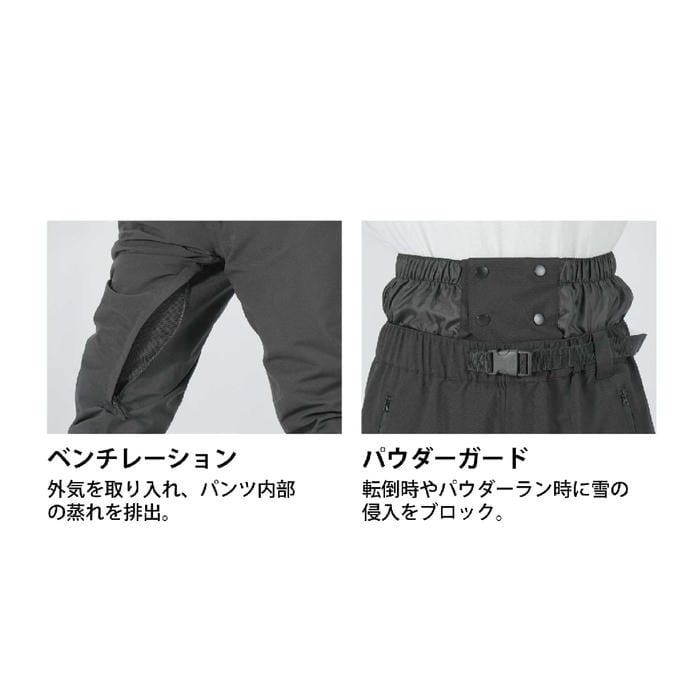 ・ウエストには雪の侵入を防ぐパウダーガードを装備。
