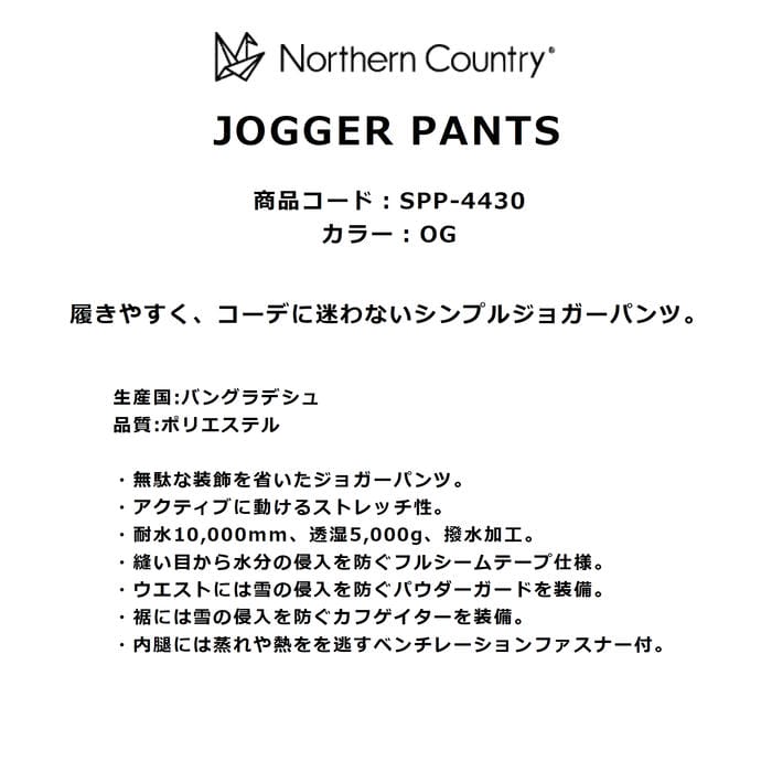 northern country JOGGER PANTS SPP-4430 スノーボードウェア パンツ ユニセックス ストレッチ 耐水 防水 撥水 透湿 パウダーガード ノーザンカントリー 正規品