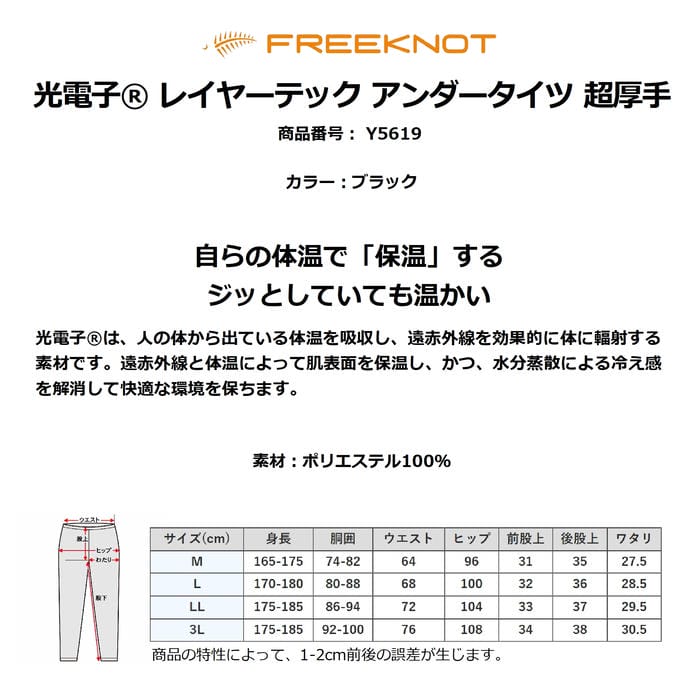 FREEKNOT 光電子 レイヤーテック アンダータイツ 超厚手 Y5619 裏起毛構造 吸水速乾 保温 丸編み製法 静電気発生抑制 メンズ あったか下着 フリーノット 正規品