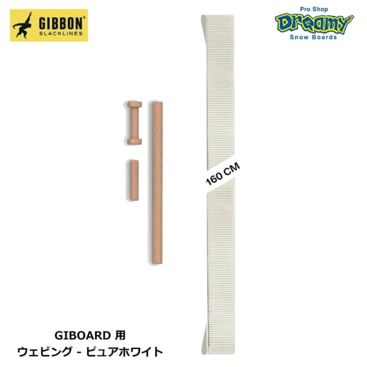 定価:4800+(税)サイズ160cmカラーピュアホワイト詳細・ギボン ピュアホワイト ウェビング 160 cm、ステッチ ループ 2 つ付き、幅 5 cm / 2 インチ。ロックアンドロールテンションシステムとテンションスティック