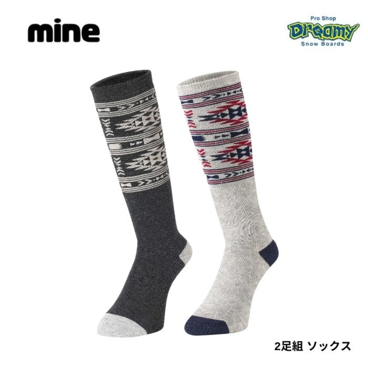 MINE マイン ソックス 2足組 ロングタイプ 雪遊び キッズ ジュニア 子供用 CH/GY1 MP-725 正規品