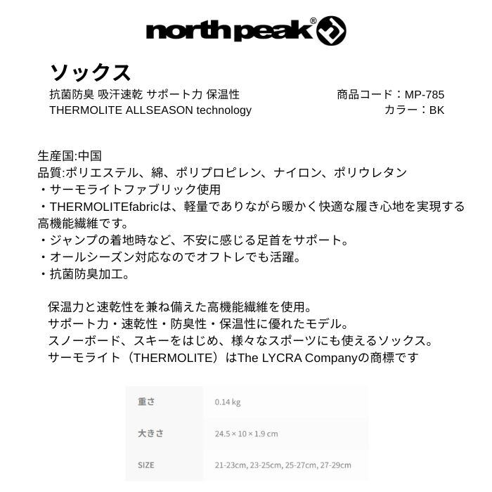 north peak ノースピーク ソックス スノーボード 抗菌防臭 吸汗速乾 サポート力 保温性 THERMOLITE ALLSEASON technology BK MP-785 正規品