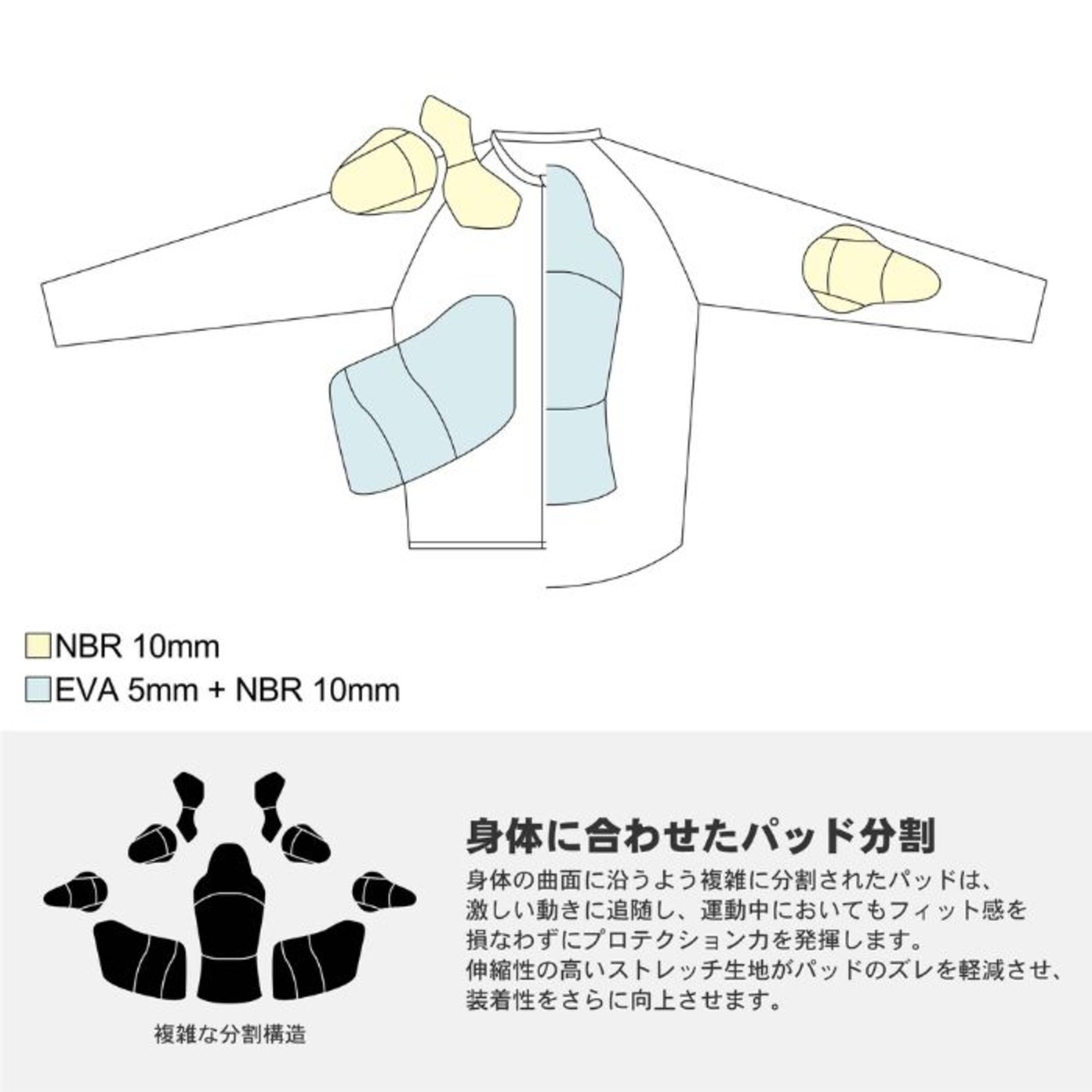 ・背中とあばらにはEVA+NBRの2層構造PADを配置