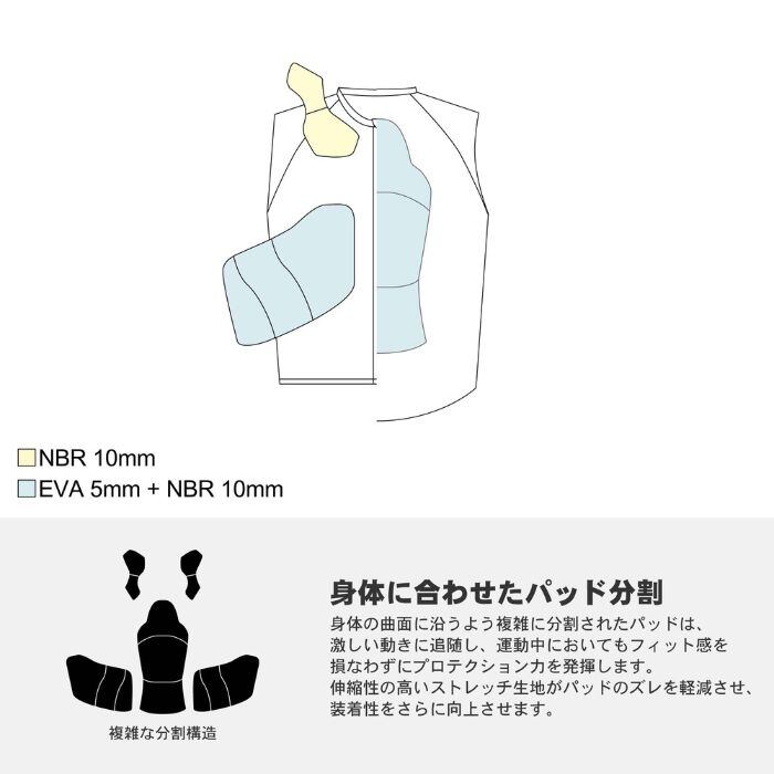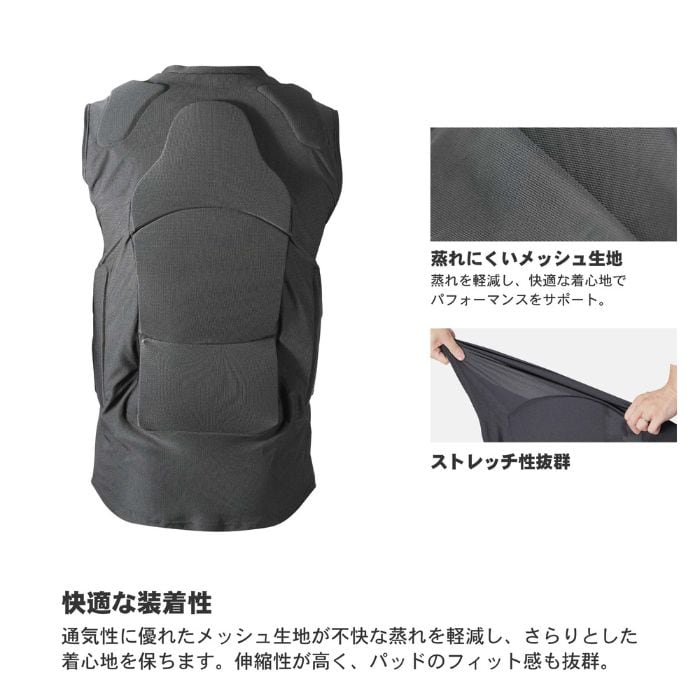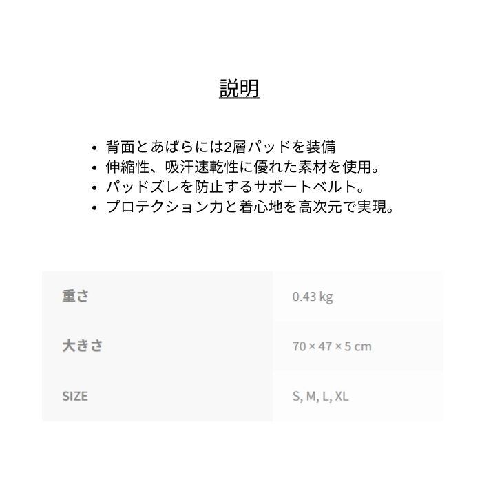 定価:15000+(税)サイズS , M , L , XLカラーBK概要・背面とあばらには2層パッドを装備