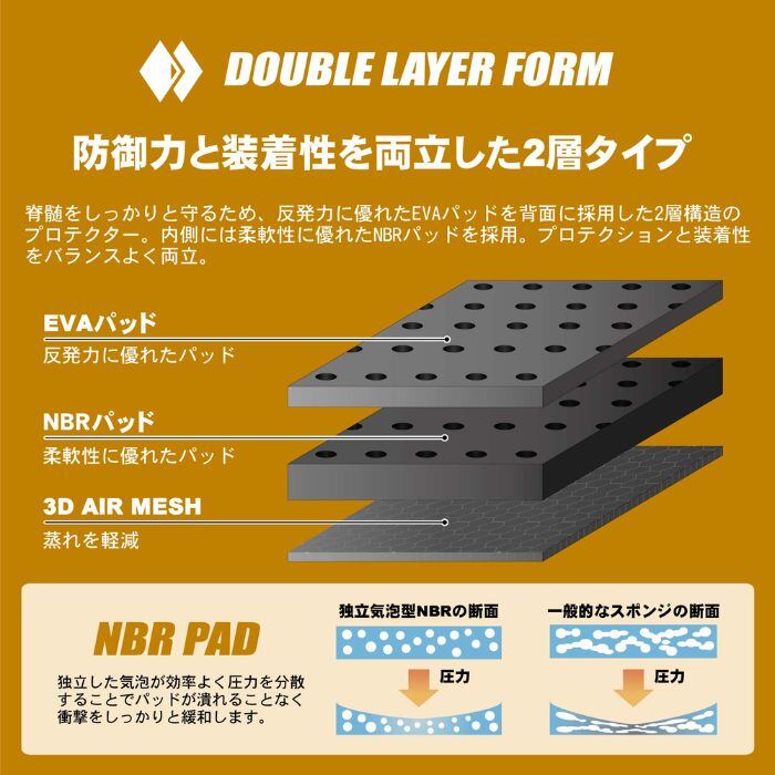 ・背中とあばらにはEVA+NBRの2層構造PADを配置