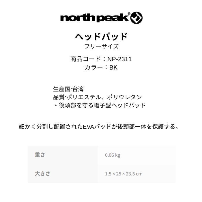 north peak ノースピーク ヘッドパッド フリーサイズ BK NP-2311 正規品