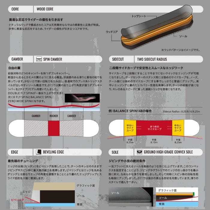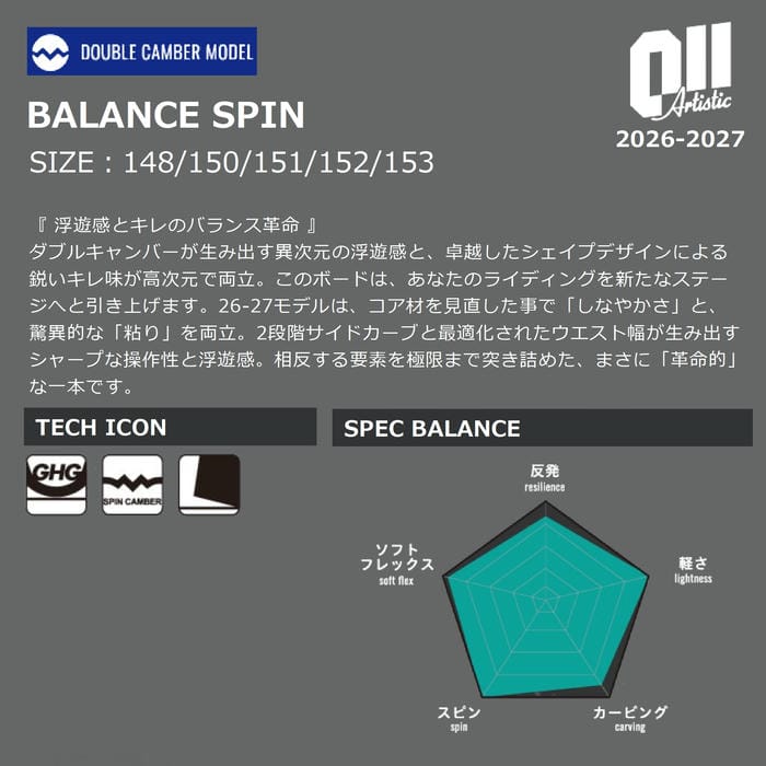 26-27 011 Artistic BALANCE SPIN 148/150/151/152/153 ゼロワンワンアーティスティック バランススピン ダブルキャンバー グラトリ 国産 スノーボード 正規品