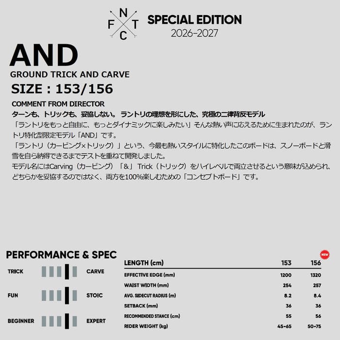 定価:85000+(税)サイズ153 , 156モデルAND商品説明ターンも、トリックも、妥協しない。 ラントリの理想を形にした、究極の二律背反モデル