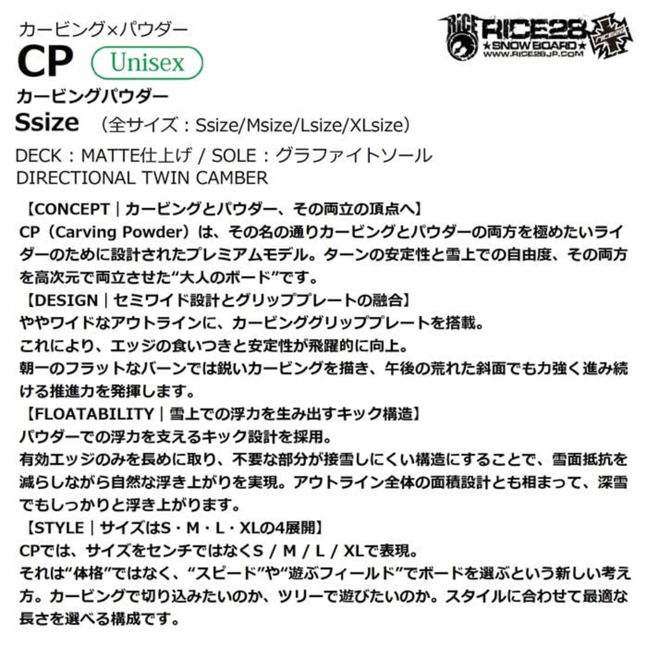 26-27 RICE28 CP Sサイズ キャンバー ディレクショナルツイン カービング パウダー ユニセックス 国産 スノーボード 板 ライストゥエンティーエイト 正規品