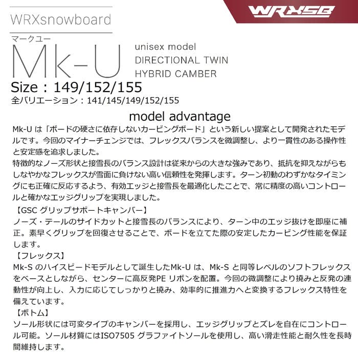 26-27 WRXsb Mk-U ディレクショナルツイン ハイブリッドキャンバー カービング グラトリ 国産 マークユー ダブルアールエックス スノーボード 板 正規品