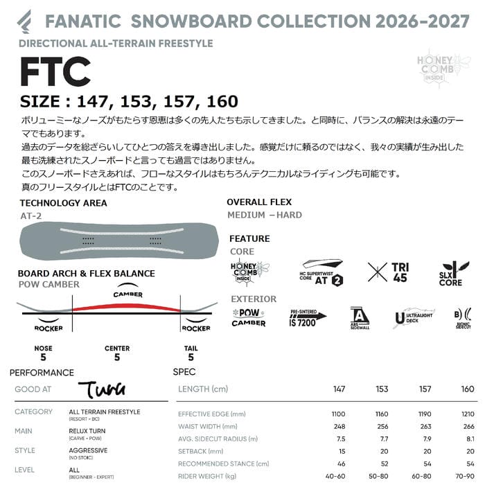 26-27 FANATIC FTC 147/153/157/160 パウキャンバー ディレクショナル オールラウンド フリースタイル ファナティック エフティーシー スノーボード 板 正規品